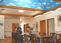たんぽぽ福祉館は地域に根差した運営を心掛けていきたいと思っております。地域の方々とお年寄りが交流することによって少しでも痴呆症状が改善したり、進行を遅らせたりという効果 が期待できますからね。 それと入居者の意思を最大限尊重したいと思っています。痴呆性老人の方の行動というのは、元気であればあるほど予測不可能な行動をとられる方もあります。 だからといってあちこちにカギをかけて往来を制限するようなことはなるだけ避けなければいけません。「手は掛けずに目を掛ける」そんなスタンスでお年寄りに接していきたいと思っています。